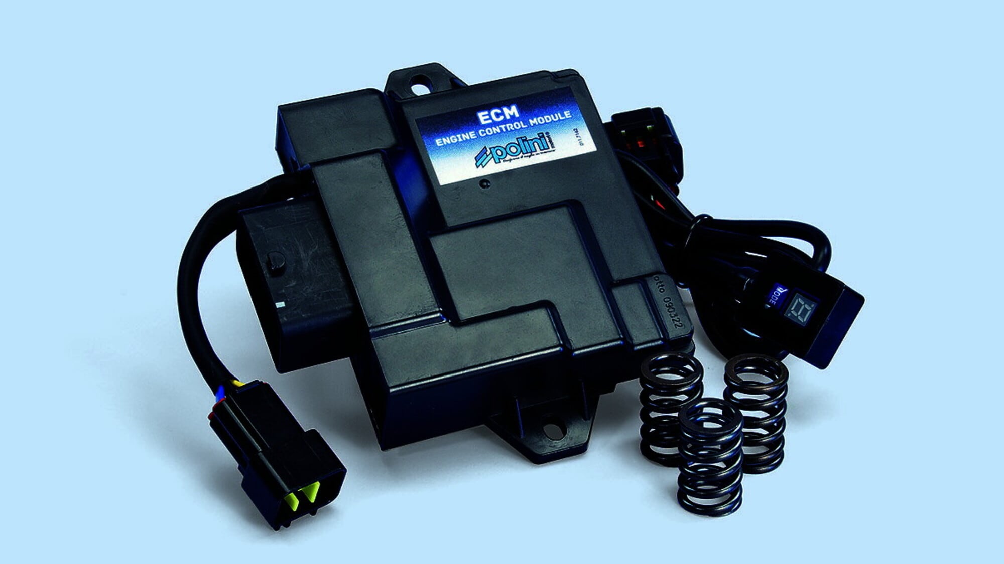 La centralina elettronica Polini gestisce il motore e comprende i sensori associati, gli attuatori, l’iniezione carburante, l’accensione e i componenti ausiliari del motore. L’ECM Polini permette di elevare le prestazioni del veicolo tramite l’utilizzo di un microprocessore di ultima generazione, in sinergia con un hardware progettato specificatamente per questo motore. Si tratta di una centralina plug & play. Semplicissima e immediata nel montaggio, è sufficiente staccare quella originale e collegare l’ECM Polini.